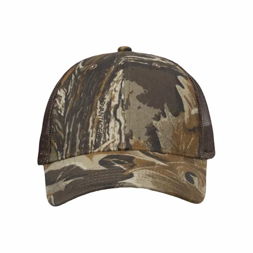 Front: 60% Cotton/40% Polyester Mesh: 100% Polyester Structured, Six-panel, Mid-profile Pre-curved Visor Advantage Classic – Brown Undervisor Mossy Oak Breakup – Black Undervisor Snapback Closure