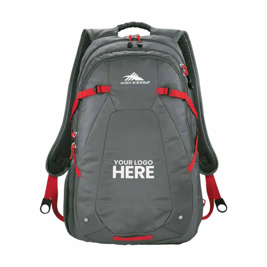 The High Sierra Fallout 17 Computer Backpack features a large multi-compartment design and fully padded Cushion Zone™ computer sleeve that fits most 17 inch laptops. An integrated Tech Spot™ sleeve fits most tablets, including an iPad. Comes with a core organizer with multiple pockets and a key fob, as well as a mesh beverage pocket and S-shaped, yolk style padded Vapel™ mesh shoulder straps with media pocket. Primary padded back panel. Adjustable side compression straps. Convenient grab handle. Front panel webbing loop for attaching extra gear. Includes lifetime warranty.