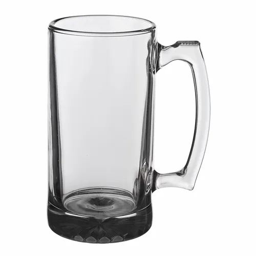 25 oz. Libbey Glass Beer Mugs. Highest Standard Glass Material. Tall, Star-bottom Sports Beer Mug with Thumb Grip Handle. Recommended Hand Wash Only