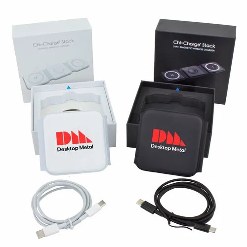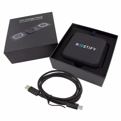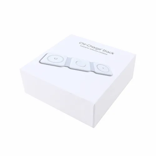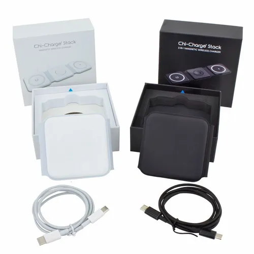 Charging multiple devices at once while traveling just got easier. The Chi-Charge Stack is our brand-new compact device that can wirelessly charge a compatible phone, Apple watch, and AirPods case all at the same time. It is a powerful device that makes a powerful statement. Simply plug into a reliable power source and charge all three. Left Charging Pad: Apple or Android phones/Middle Charging Pad: Apple watch only/Right Charging Pad: Airpods or another phone