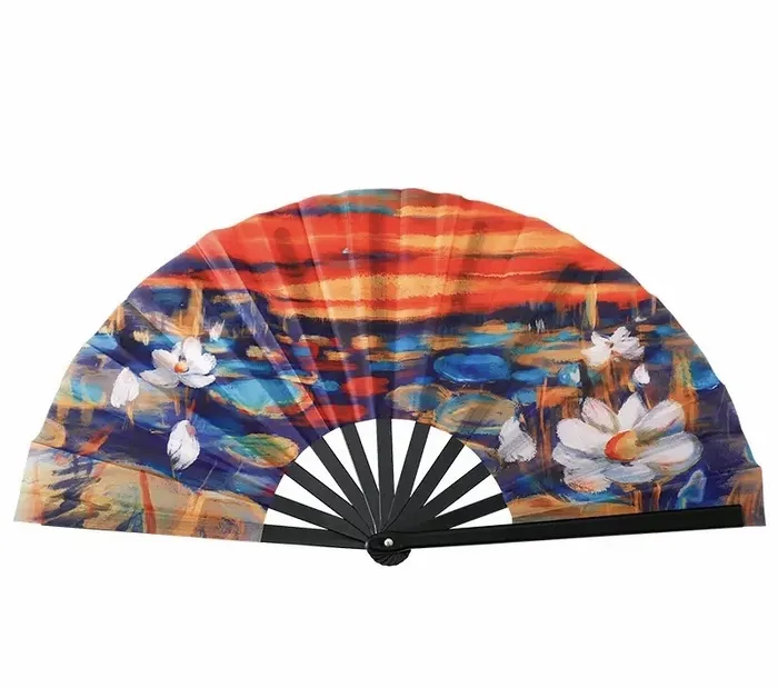 A Easy Folding Hand Fan is a single-sided printed fan made from polyester with a durable plastic handle, designed to open and close smoothly with a silky feel. Measuring 10 inches, these fans are lightweight, portable, and perfect for both practical use and decorative purposes.