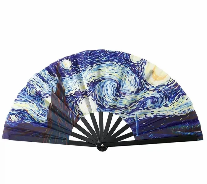 The eco-friendly polyester surface delivers bright, vibrant colors through digital printing, ensuring your logo or design stands out. Available with black or white handles, this fan combines style with functionality, making it an excellent choice for both personal and promotional needs.