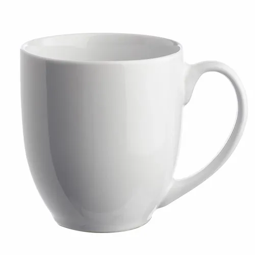 Bistro Style Wide Body Drink Promotional Imprinted Coffee Mugs. Smooth Molded Ceramic Composite. Glossy Vibrant Color Exterior Finish. High-Curved Grip for Easy Grab-n-Go Handling. Recommended Hand Wash Only