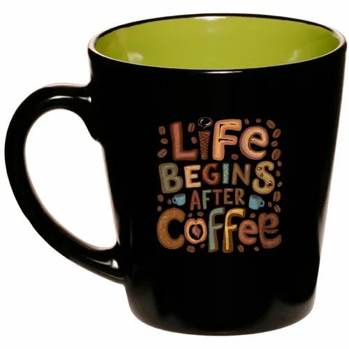 Discover our Outstanding Two-Shade Ceramic Mugs, uniquely shaped with a smooth molded ceramic composite. The mugs feature a stylish black matte exterior complemented by a glossy colored interior, adding elegance and vibrancy. With a high curved grip, they ensure easy handling for your daily coffee enjoyment. Versatile and durable, they are perfect for various beverages. An ideal gift for coffee enthusiasts, friends, and family, these mugs elevate the coffee experience, bringing sophistication to every sip and a lasting impression to your cherished moments.