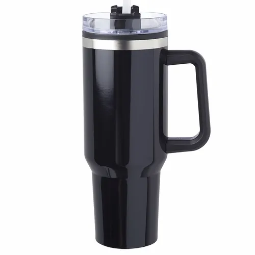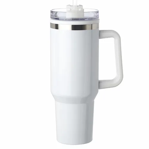 40 oz. Capacity. Slider Transparent Lid with Straw Included. Stainless Steel Exterior and Plastic Interior. Easy Grip to Grab-n-Go. EVA Bottom Pad. Wide Mouth for Easy Cleaning and Pouring Drinks