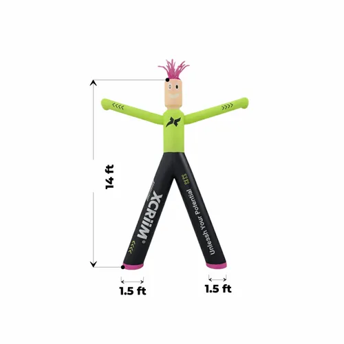 • Maximize your street-side visibility and create an unforgettable, friendly landmark with the classic Two-legged Air Dancer. With its iconic and cheerful dancing design, this inflatable commands attention from all directions, making it a highly effective promotional tool for retail stores, car dealerships, and large-scale outdoor events. Its massive printable area on both the front and back allows for bold, vibrant, full-color graphics that bring your brand to life in a fun and irresistibly engaging way.