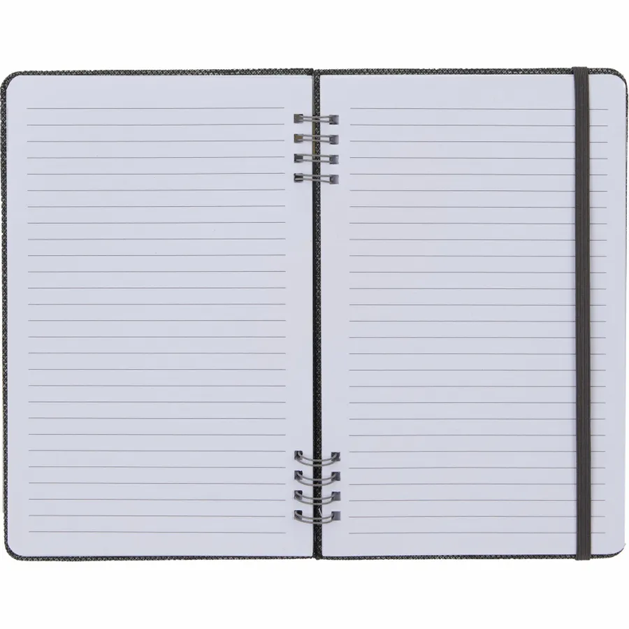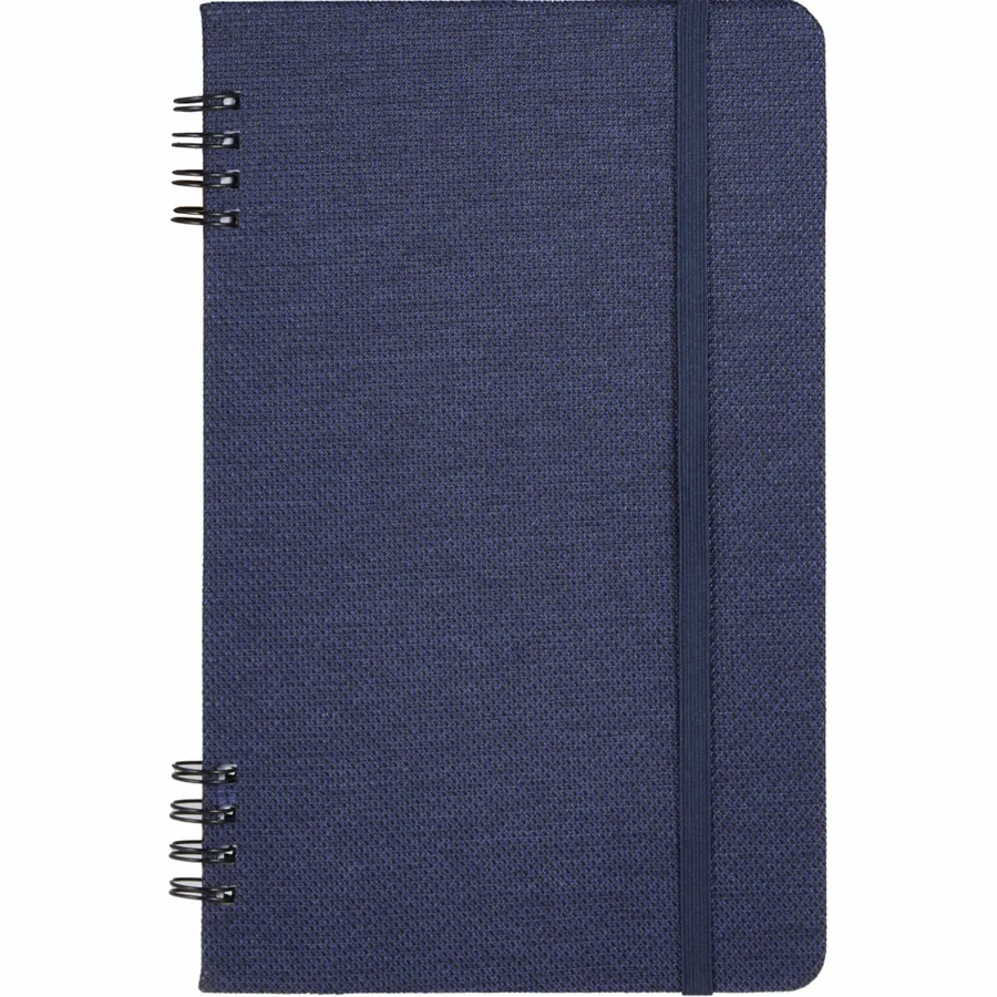 The 5 x 7 Vila Recycled Spiral Notebook is part of the sustainable, budget-friendly Vila collection, featuring a 100% rPET hard cover with spiral binding. Includes an elastic closure and 50 sheets of recycled lined paper. By choosing this notebook, youre making a positive impact on the environment, as one percent of sales are donated to environmental nonprofits through a partnership with 1% For The Planet.