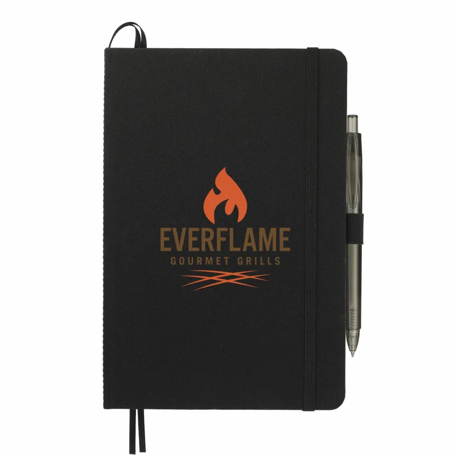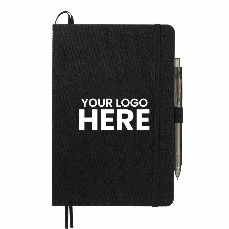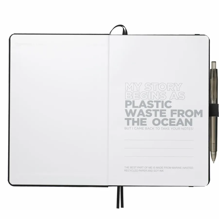 This set includes (2800-80) 5.5 x 8.5 Recycled Marine Bound Journal Set and (6003-29) FUNCTION RPET Gel Pen. Features a uniquely crafted cover material, Repreve, which is made with recycled ocean plastic and waste collected from coastlines of developing countries. Includes color-matching elastic closure, pen loop and ribbon page marker. 96 sheets of lined recycled paper. Through a partnership with 1% For The Planet, one percent of sales of all EcoSmart products are donated to environmental nonprofits.