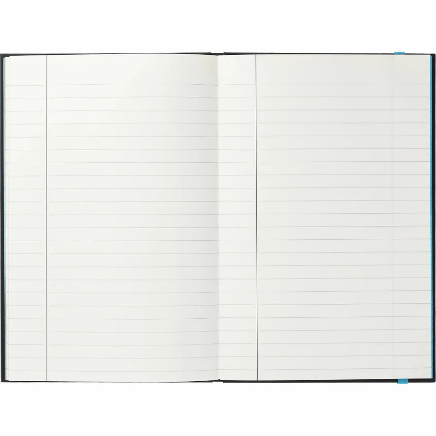 The 5.5 x 8.5 FSC Mix Color Pop Bound Journal features a hard cover with a soft matte black cover to highlight the most subtle or colorful logos. This custom Journal includes 96 sheets of FSC Mix cream lined paper with bright colored edges and corresponding color elastic closure.