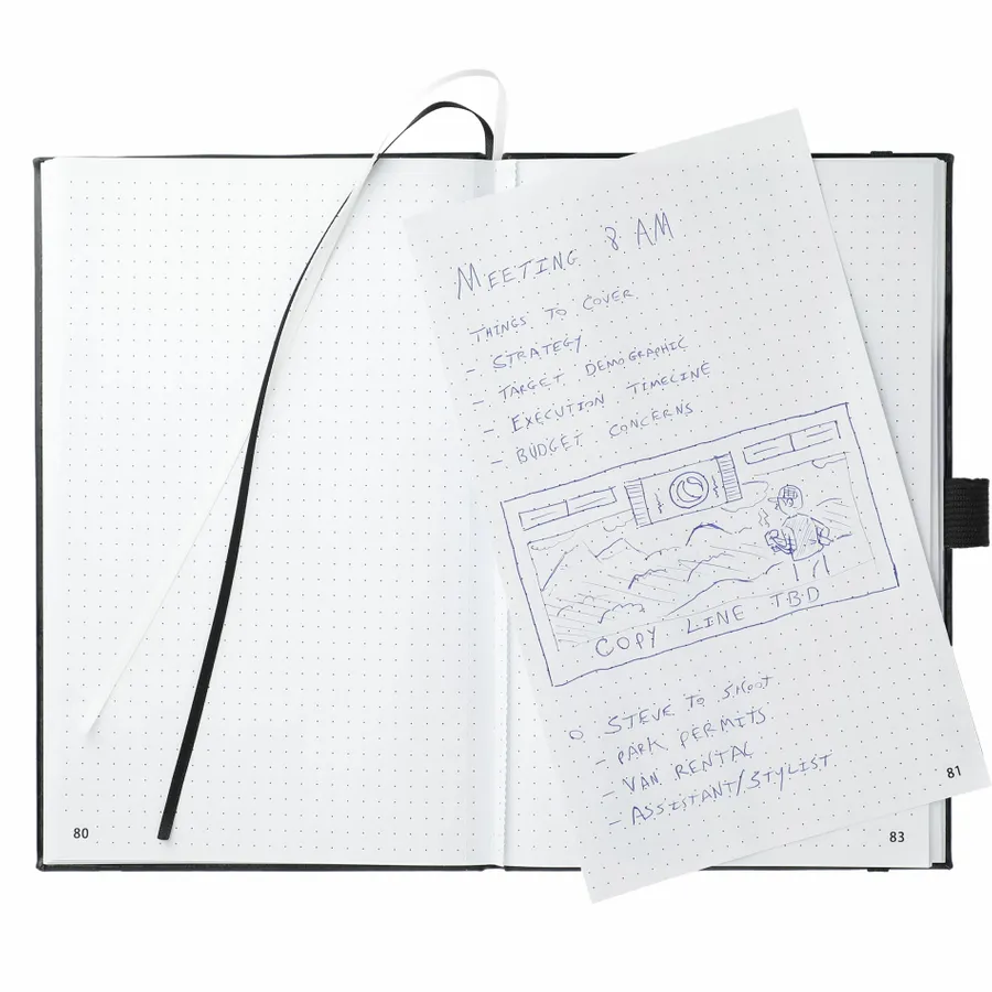 The 5.5 x 8.5 FSC Mix FUNCTION Bulleting Notebook is perfect for organizing your thoughts. Features a square, cornered hardbound cover with color-matching elastic closure and pen loop. Double-ribbon page markers. 80 sheets of FSC Mix white perforated dotted and numbered pages. Pair it with your favorite gel pen.