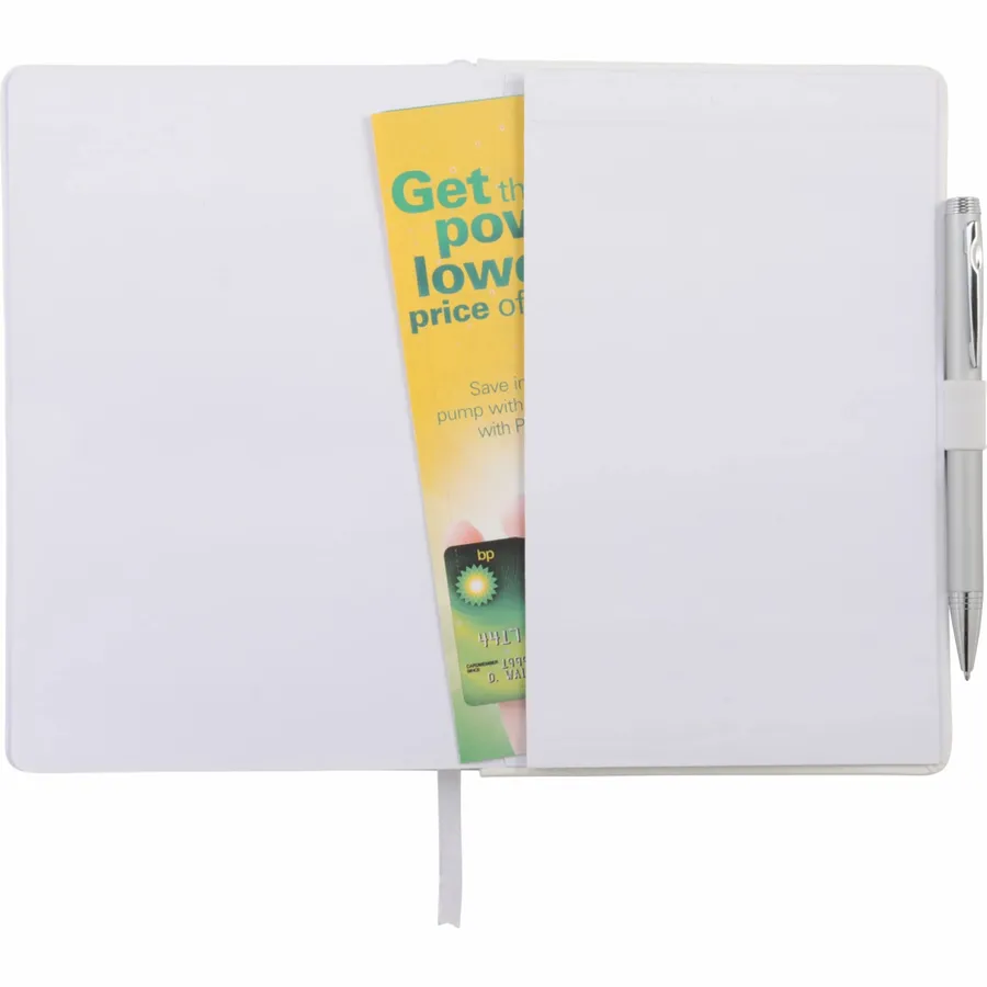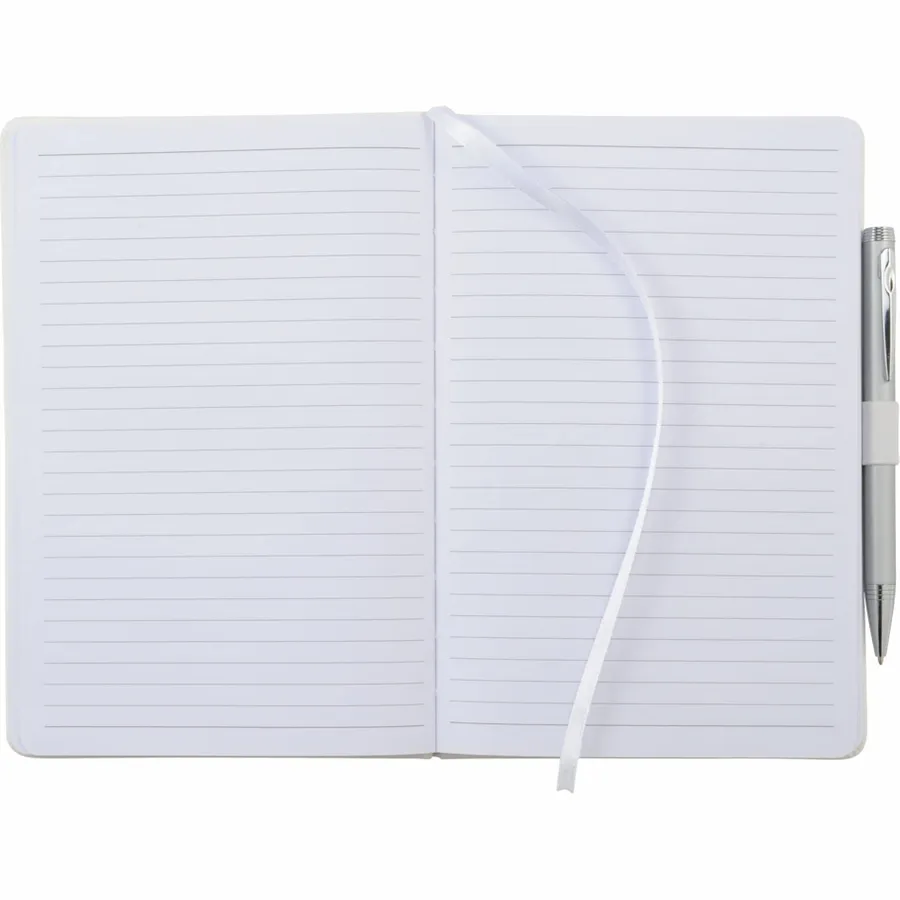 The 5.5 x 8.5 FSC Mix Nova Bound Journal features a faux leather like, hard cover with built-in elastic closure, ribbon page marker, and expandable accordion pocket. Includes 96 sheets of lined white FSC Mix paper. Pen is not included.