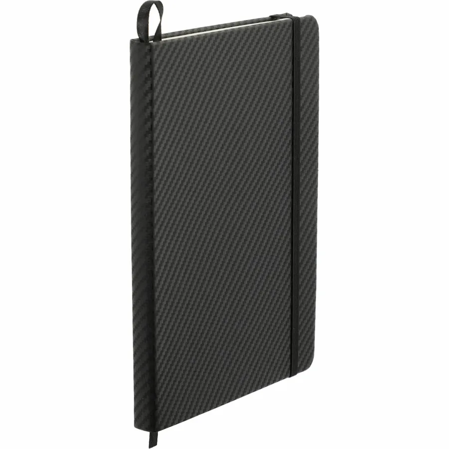 The 5.5 x 8.5 FSC Mix Ambassador Carbon Fiber Journal features an automotive inspired carbon fiber cover. This specialty Journal includes built-in elastic closure and a ribbon page marker. The Ambassador Carbon Fiber Journal includes 80 sheets of cream lined FSC Mix paper and an expandable accordion pocket.