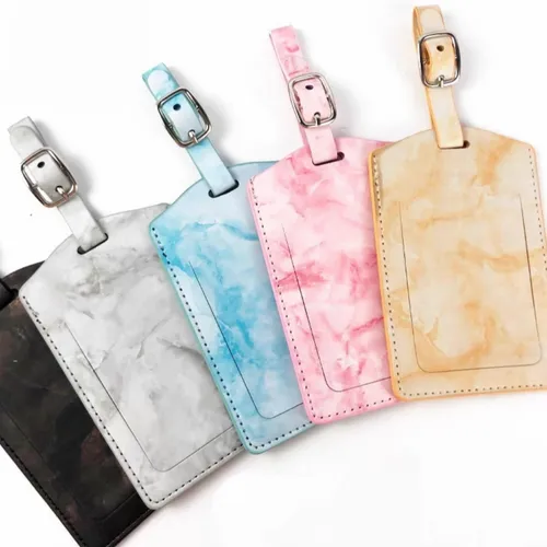 • Flip Marbling Luggage Tags - Introducing our Flip Marbling Luggage Tags – the perfect blend of style and functionality. Crafted from premium quality PU Leather, these tags add a touch of elegance to your travel gear. Designed to withstand the rigors of travel, they feature a secure buckle strap and a privacy flap to protect your personal information. Elevate your journey with our Luxury Leather Luggage Tags and travel with confidence and style.