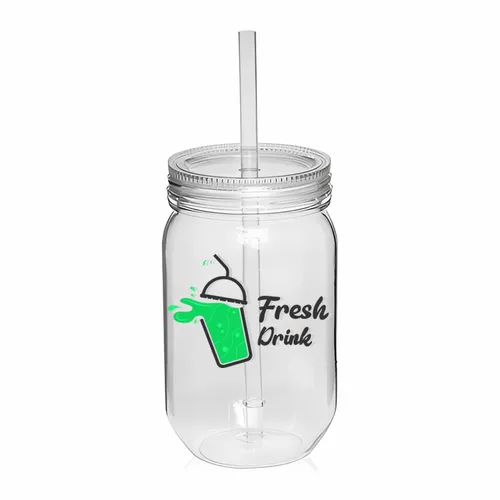24 oz. Drink Easy Mason Jars with Straw are the perfect way to enjoy your favorite drinks on the go. These durable and lightweight jars are made with single wall construction and feature a matching straw and lid. This product is available in a variety of colors. Order your 24 oz Plastic Mason Jars with Straw today and enjoy your favorite drinks hands-free!