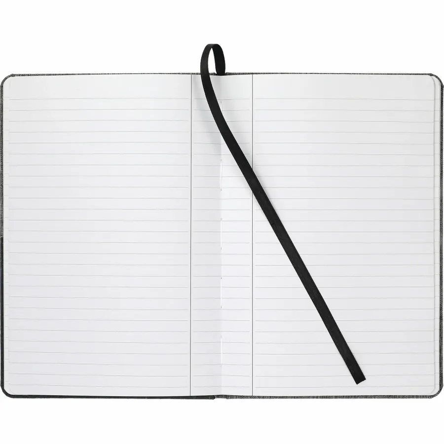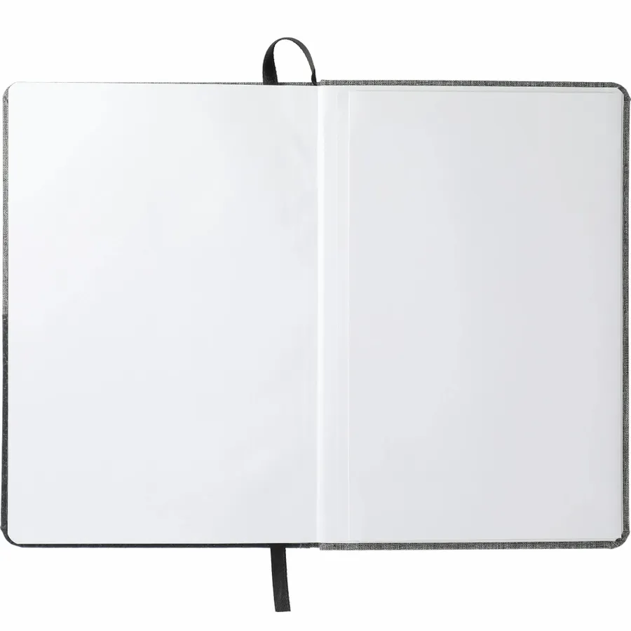Made of post-consumer recycled fabrics, the 5.5 x 8.5 FSC Mix Reclaim Recycled Bound Journal features a RPET hard cover with recycled leather front pocket for storing documents, smartphone, and other essentials. This notebook includes 80 sheets of FSC Mix recycled white paper and a back document pocket. This item contains 85% of recycled material. Through a partnership with 1% For The Planet, one percent of sales of this and all EcoSmart products will be donated to nonprofits dedicated to protecting the planet.
