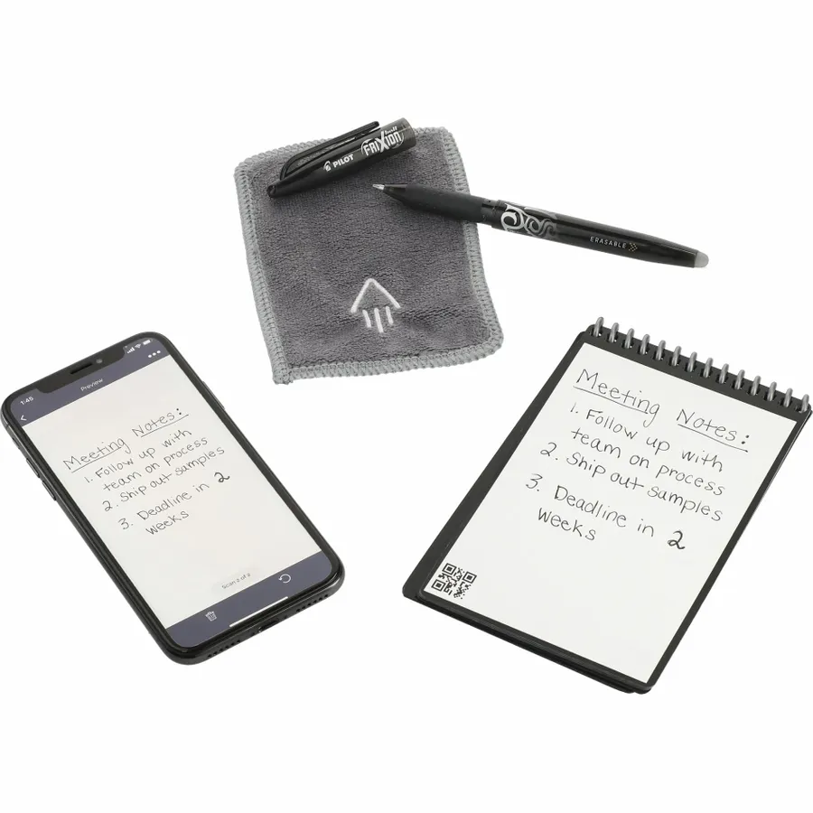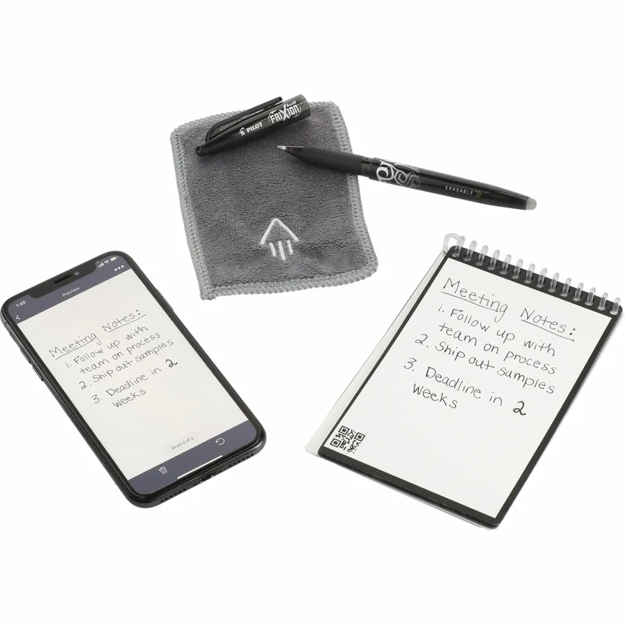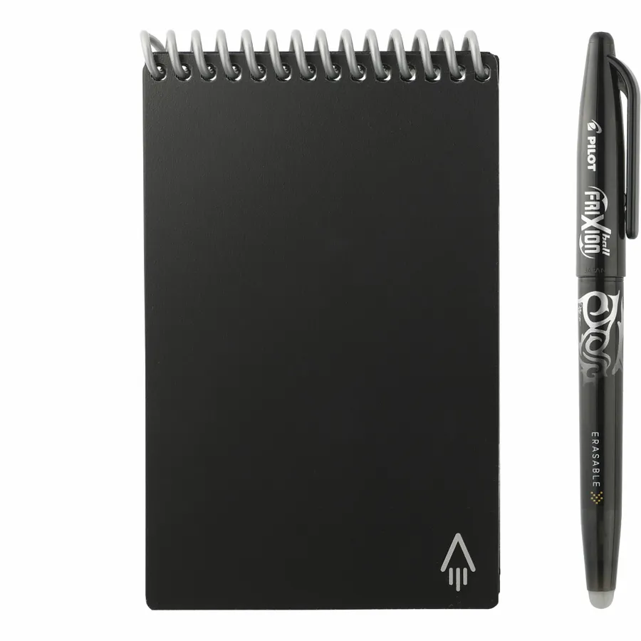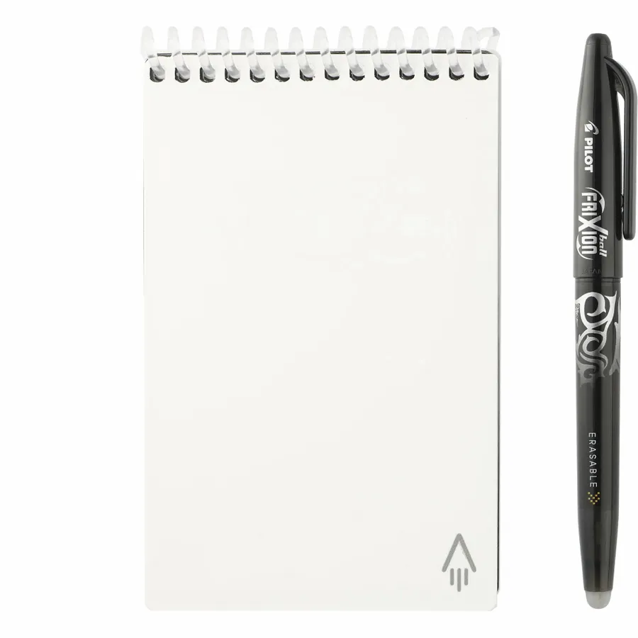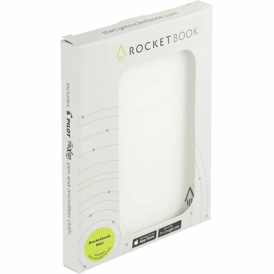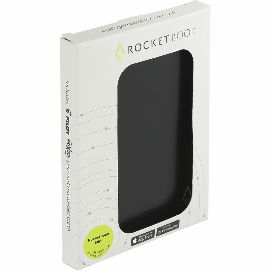 The Rocketbook Mini Notebook is designed for every classroom, office, and personal mission. The synthetic dotted paper allows you to write smoothly with a Pilot Frixion pen, then magically wipe clean with the included microfiber cloth when damp to reuse again and again! Use the Rocketbook app to blast your notes, plans, lists, and big ideas to your favorite cloud service for proper organization. Then, erase and reuse your Flip for your next adventure. This hard cover notebook contains 48 pages.
