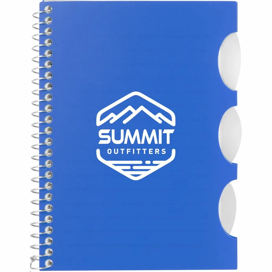 The 4” x 6” FSC Recycled Multitask Notebook features a 50% recycled PP hard cover with a die-cut design on the edge. The notebook includes tabs for organization and 70 sheets of FSC-certified recycled lined paper. By choosing this notebook, youre making a positive impact on the environment, as one percent of sales are donated to environmental nonprofits through a partnership with 1% For The Planet.