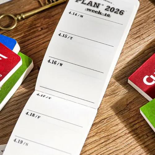 A compact, stylish planner with gold accents, perfect for weekly planning and quick notes on the go.