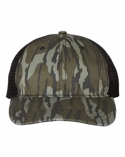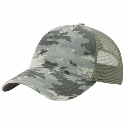 100% Polyester Military Camo/Green Camo – Front: 100% Cotton, Back: 100% Polyester Polyester Twill Fabric, Soft Trucker Mesh Camo: Cotton Twill Fabric, Soft Trucker Mesh Unstructured, Six-panel, Low Pro Profile Pre-curved Bill Adjustable Snapback Closure ADJ or MD/LG (7″ – 7 3/4″)
