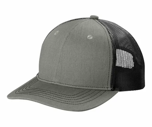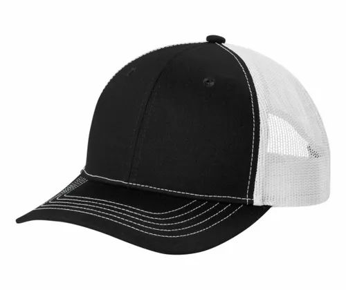 Available in solid, two-toned and tri-toned, this cap features breathable mesh and contrast stitching on the bill. Fabric 100% cotton twill front panels and bill (Solids), 65/35 polyester/cotton twill front panels and bill (Heather Grey) 100% polyester mesh mid and back panels Structure Structured Profile Mid Closure 7-position adjustable snapback