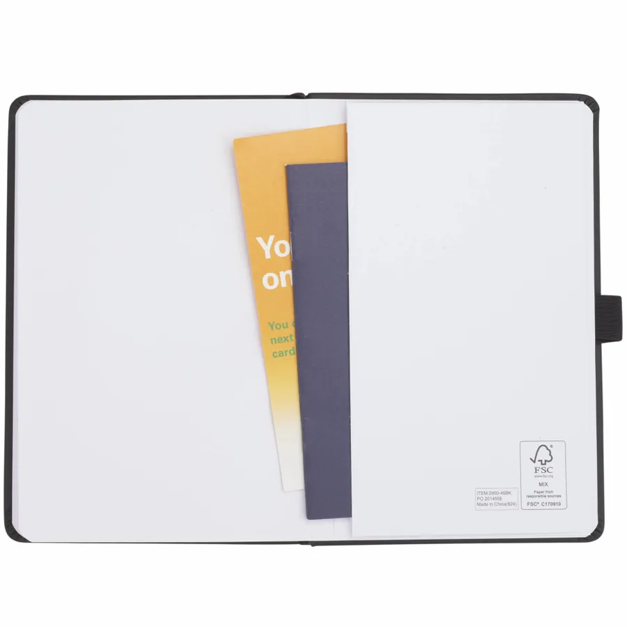 The 5.5 x 8.5 FSC Mix Pineapple Leather Bound Journal is uniquely crafted with 30% repurposed pineapple components. Hard cover, color-matching elastic closure, pen loop and ribbon page marker. 80 sheets of FSC-certified paper. Back document pocket. Through a partnership with 1% For The Planet, one percent of sales of all EcoSmart products will be donated to environmental nonprofits.