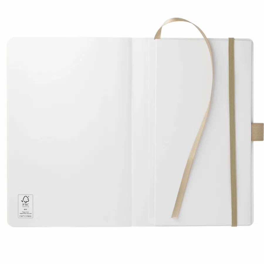 The 5.5 x 8.5 FSC Mix Stone Soft Bound Journal features a FSC Mix soft paper cover. It includes 80 sheets of lined stone paper, which is water-resistant, tearproof and noticeably smooth for a superior writing experience. It also features an elastic closure, ribbon page marker, elastic pen loop and back document pocket. And through a partnership with 1% For The Planet, one percent of sales of all EcoSmart products are donated to environmental nonprofits. Due to the nature of the material, there may be color variances.