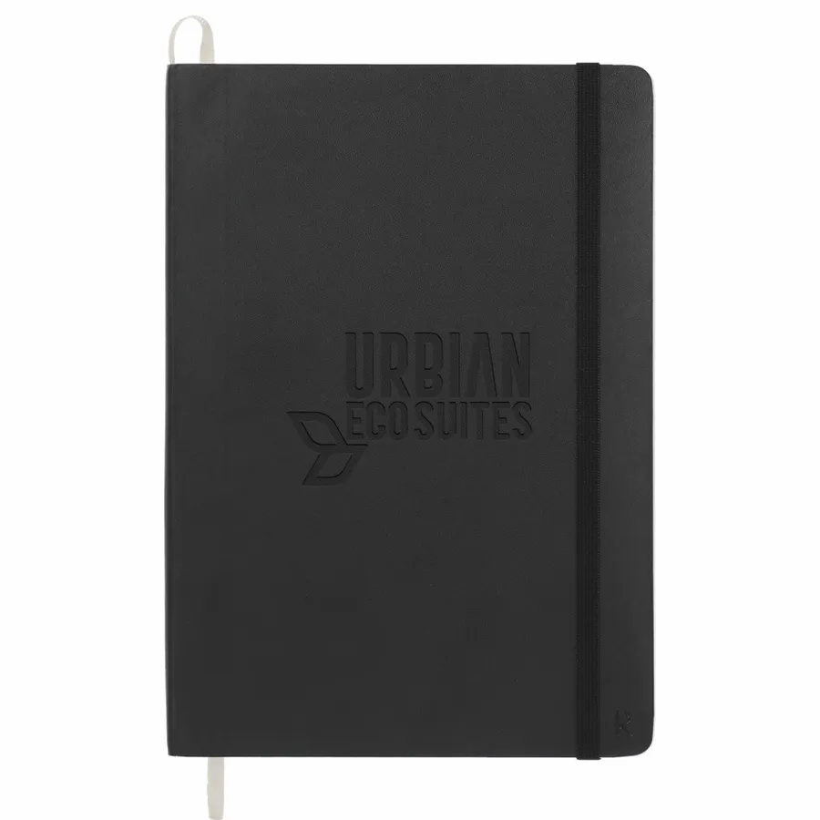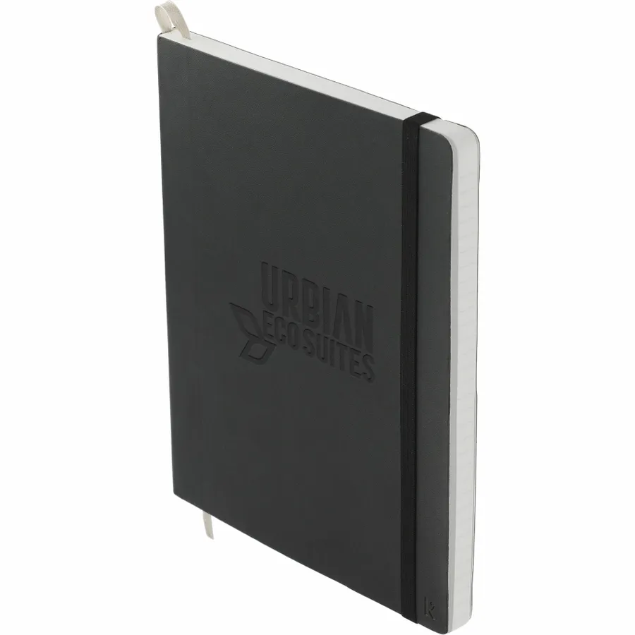 The Karst 5.5 x 8.5 Stone Soft Bound Notebook is made from high-quality, sustainable, recyclable stone paper with a flexible vegan leather cover. With an expandable back pocket, divider ribbon or bookmark, elastic band and lay-flat binding. This unique, eco-friendly notebook is acid-free, bright white, and waterproof with a premium look and feel. The smooth texture of the 72 sheets of white stone lined pages and flat-lay binding provide ample comfort and writing space for your notes and ideas. This stone paper holds a C2C Cradle to Cradle Silver Certification. That means if you do have to dispose of your Karst notebook; it is recyclable.