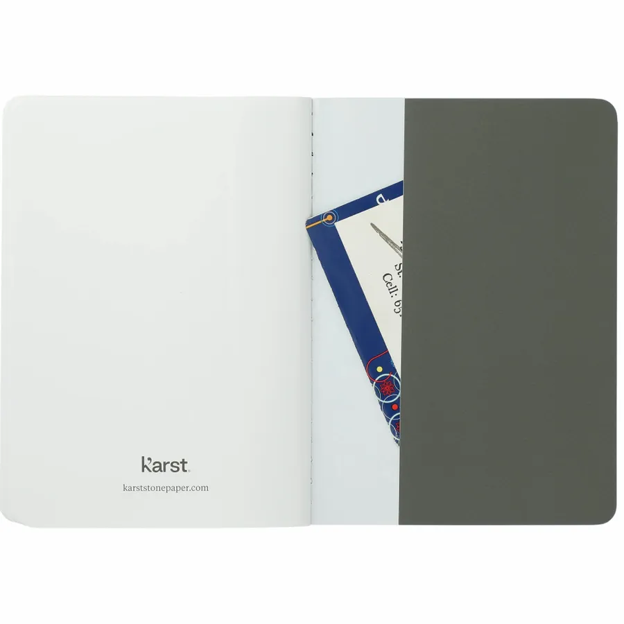 The Karst Pocket Stone Paper Notebook is perfectly sized to carry with you on the go. This notebook features 50 blank pages of recyclable stone paper which is waterproof, tear-resistant and allows for friction-free writing. Also includes a back pocket. Due to the nature of the material, there may be color variances on the cover.
