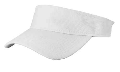 Elevated mesh fabric creates a high-performance visor ideal for tennis and golf, but it can also crossover for coaches, team events and fanwear. 100% polyester Curved bill Hook and loop closure with clear plastic pull tab