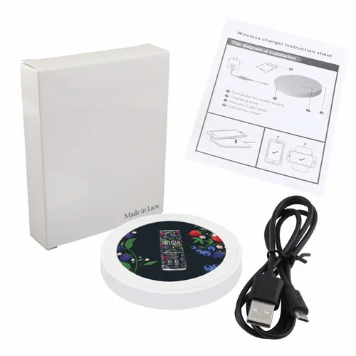 Charge Qi-enabled devices wirelessly by placing compatible device on top of the Chi-Charge pad indicator light. Micro-USB input with cord included.