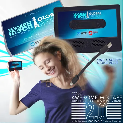 The Awesome Mixtape 2.0 Wireless Speaker is now a 2,000 mAh capacity power bank and a wireless speaker. Get ready to travel with big sounds for workouts or relaxing, and also comes with the new ONE CABLE (Type-C-to-Lightning) that comes stored on one side of the Awesome Mixtape 2.0 for your convenience. This fun retro cassette design is customized on the "A-side" and "B-side" labels with full-color printing that will show off a brand with style points.
