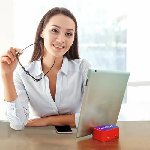 This phone and tablet stand wireless speaker is designed to provide the high definition sound your digital life demands with a great full color grill. Simply pair your handheld device, place it on the stand, and enjoy the dynamic sound.