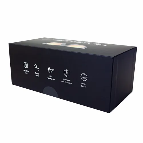 Wireless wireless Audio Sunglasses, wireless specification: V5.0 QCC3034, wireless profiles: HSP,HFP,A2DP and AVRCP, Talk time: About 6 hours (50% volume), Music playing time: About 5.5hours (50% volume), Charging time: About 1.5 hours, Rechargeable 95 mAh Li-polymer battery, Ergonomic Design for Cycling, IPX7 waterproof Qualcomm Aptx, UVA/UVB protection